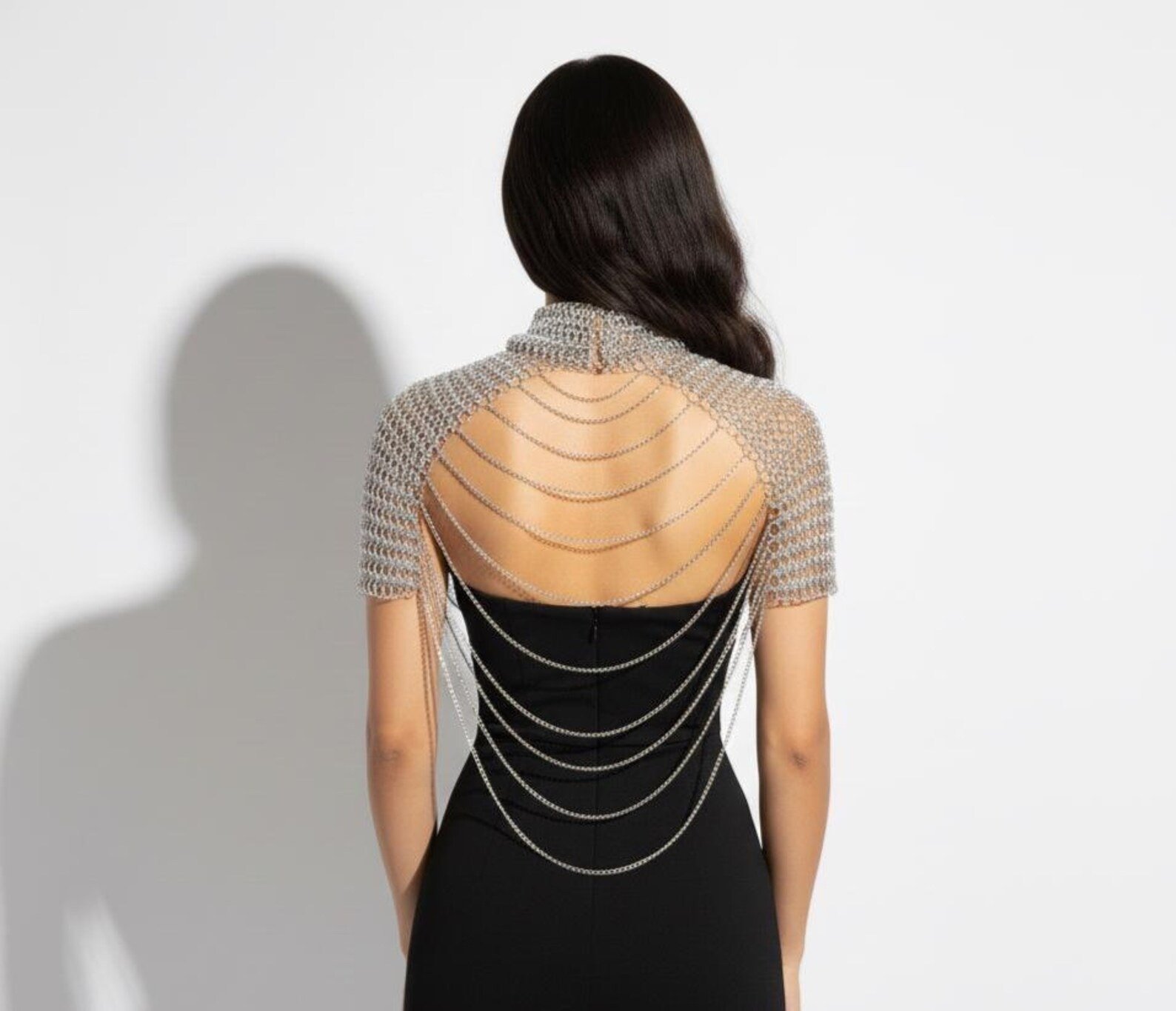 Chainmail Sexy Bra, Chainmail Skirt with Nacklace, Chainmail Bikini top, Handmade gift